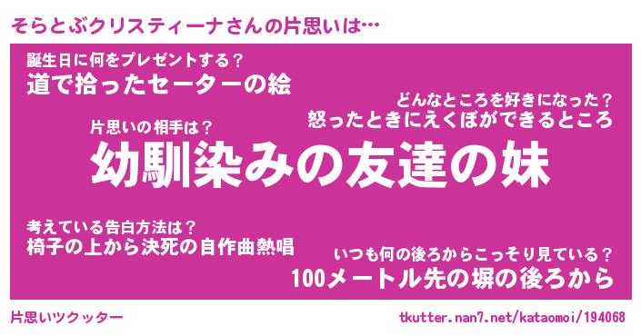 | 男性向けラノベタイトル風あだ名 | 『そらとぶクリスティーナの憂鬱』 |