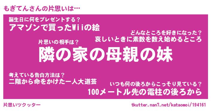 | ヘコむあだ名 | 『もぎにー』『酢こんぶ』『もぎを』 |