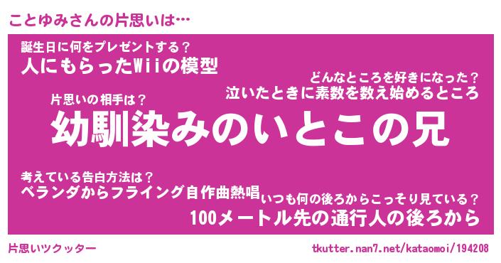| ヘコむあだ名 | 『ことにゅー』『つくし』『こと太郎』 |