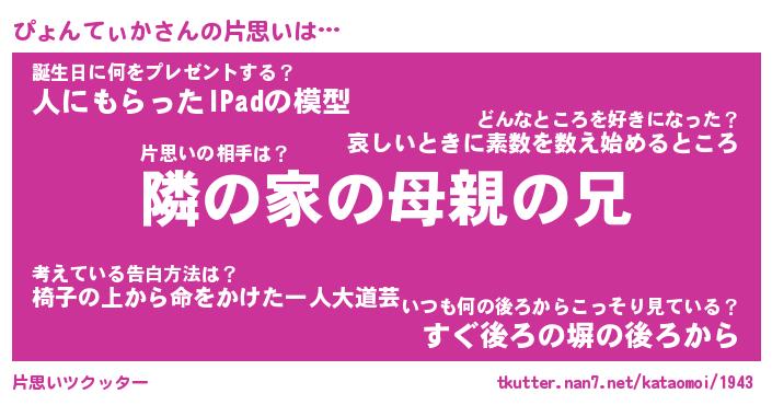 | ヘコむあだ名 | 『ぴょにー』『レバニラ』『ぴょっぺ』 |