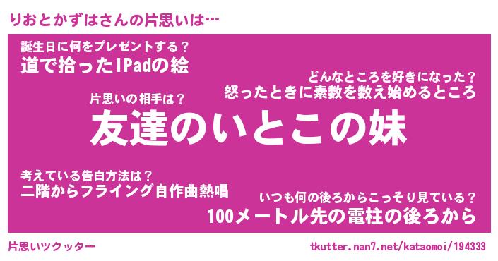 | ヒーロー風カッコイイあだ名 | 『スーパーリオトカズハ』『魔戒騎士リオ』 |