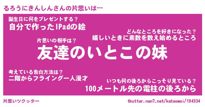 | 胡散臭い通販商品みたいなあだ名 | 『億万長者になれる水晶球…その名も「るろうにきんしん」』 |