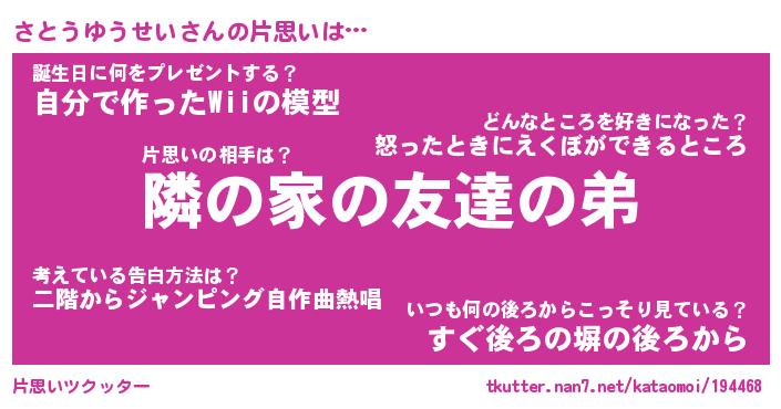 | 肩書あだ名 | 『さとうゆうせい御曹司』 |