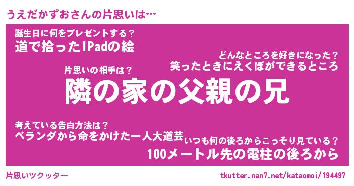 | 肩書あだ名 | 『うえだかずお店長』『うえだかずお先生』 |