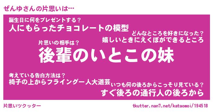 | 意味不明あだ名 | 『ペロリンぜんゆ』『ぜんゆフォーエバー』 |