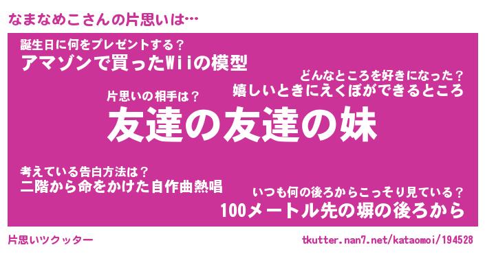 | ファンタジー風あだ名 | 『ナマフェル』『エターナルナマナメコー』 |