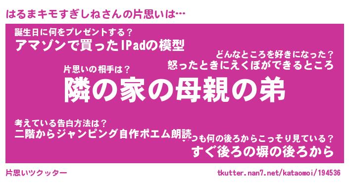| 胡散臭い通販商品みたいなあだ名 | 『必ず成功するブレスレット…その名も「はるまキモすぎしね」』 |