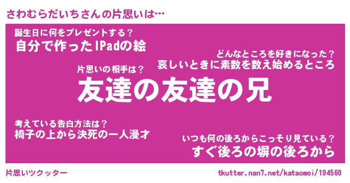 | 伝説のあだ名 | 『封印されしスナイパーさわむらだいち』 |