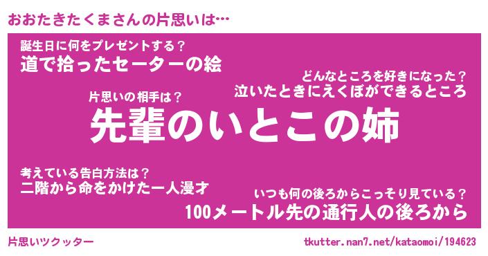 | 胡散臭い通販商品みたいなあだ名 | 『モテモテ間違いなし水晶球…その名も「おおたきたくま」』 |