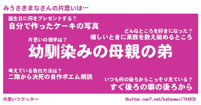 | ヘコむあだ名 | 『みうふぇ~』『つくし』『みうっぺ』 |