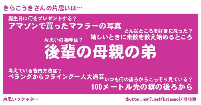 | ヘコむあだ名 | 『きらふぇ~』『酢こんぶ』『きらお』 |