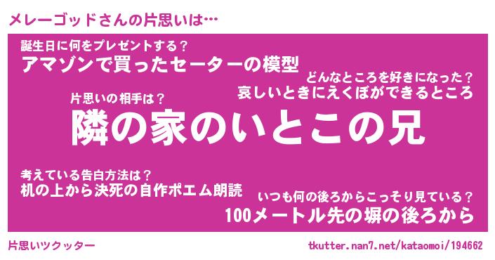 | 胡散臭い通販商品みたいなあだ名 | 『モテモテ間違いなし水晶球…その名も「メレーゴッド」』 |