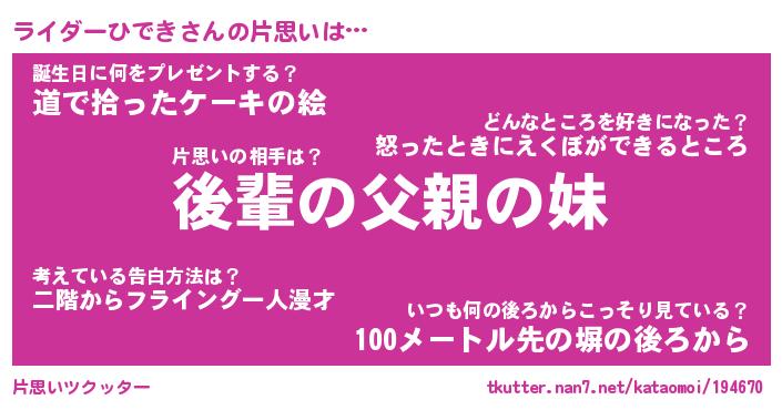 | 胡散臭い通販商品みたいなあだ名 | 『億万長者になれる水晶球…その名も「ライダーひでき」』 |