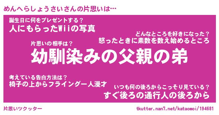 | 胡散臭い通販商品みたいなあだ名 | 『必ず成功する水晶球…その名も「めんへらしょうさい」』 |