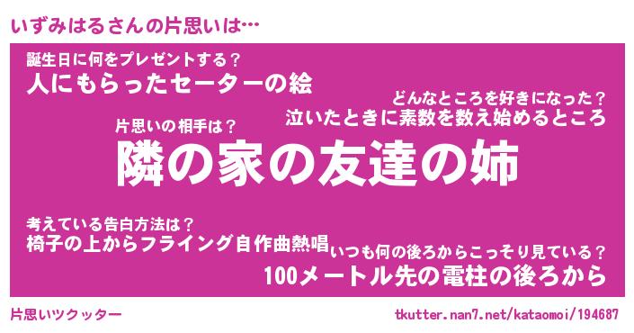 | ファンタジー風あだ名 | 『イズフェル』『エターナルイズミハルー』 |