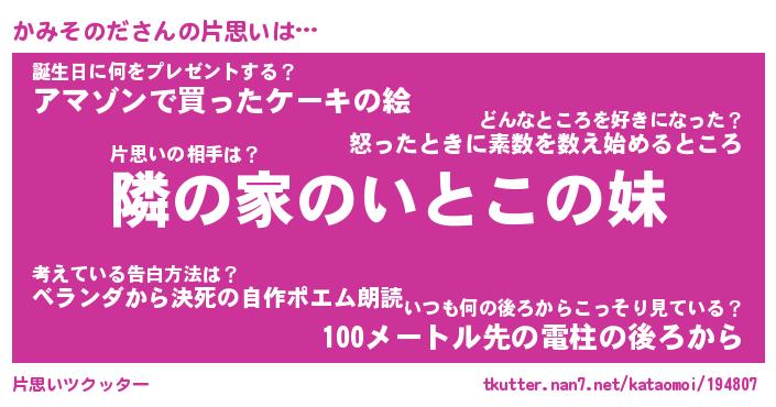| ヘコむあだ名 | 『かみにゅー』『なまこ酢』 |