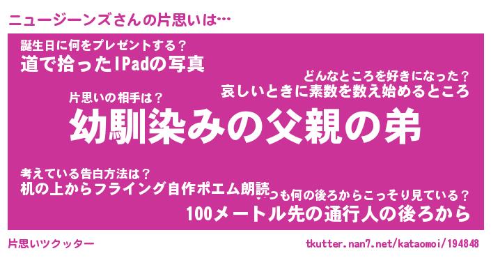 | 男性向けラノベタイトル風あだ名 | 『ニュージーンズの憂鬱』 |