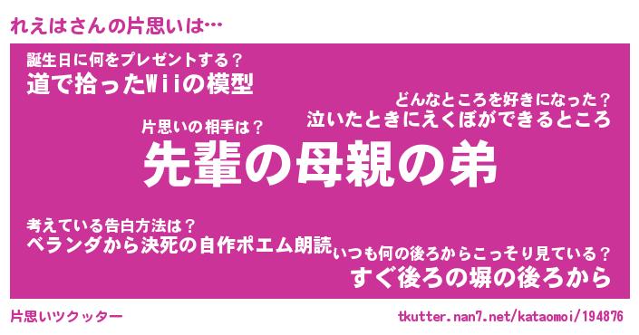 | ヘコむあだ名 | 『れえにー』『つくし』『れえぷりん』 |