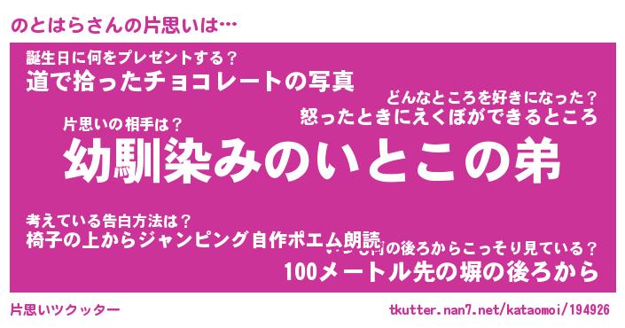 | ヘコむあだ名 | 『のともー』『酢こんぶ』『のとっ子』 |