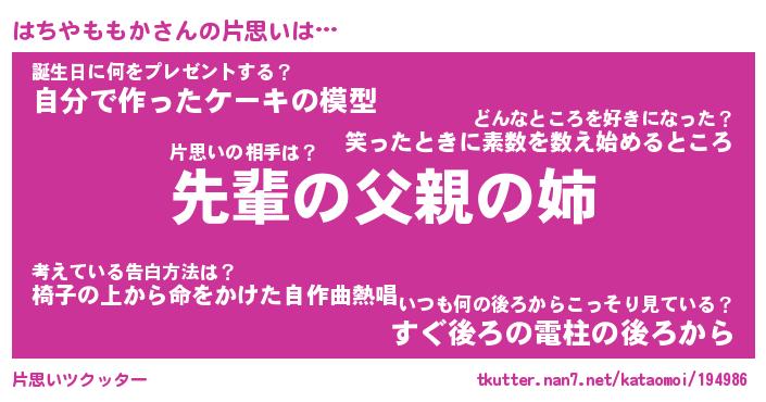| 胡散臭い通販商品みたいなあだ名 | 『モテモテ間違いなし水晶球…その名も「はちやももか」』 |