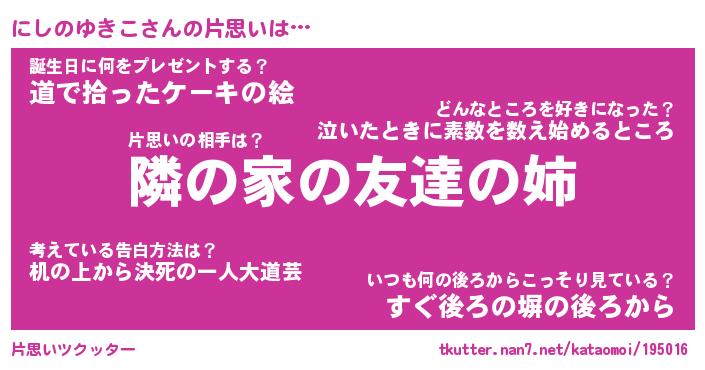 | 胡散臭い通販商品みたいなあだ名 | 『必ず成功する霊験あらたかなお札…その名も「にしのゆきこ」』 |