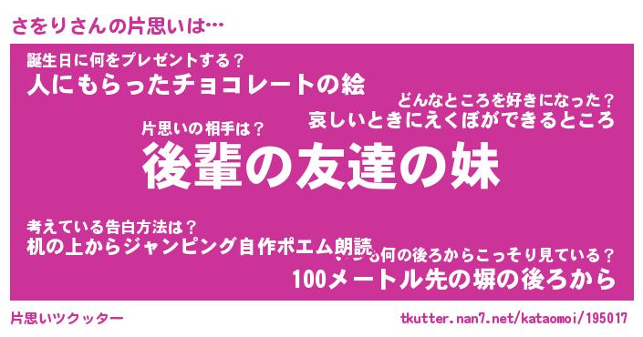 | ツイッター | さをりさんのツイッターID『dendenmushi_kun』 |