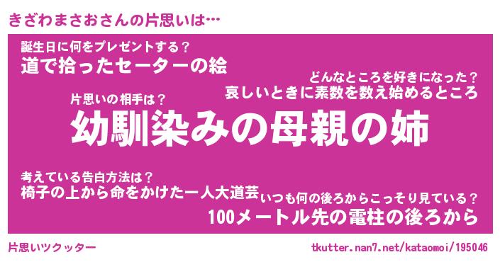 | 女子向けラノベタイトル風あだ名 | 『(仮)きざわまさおのやんごとなき事情』 |