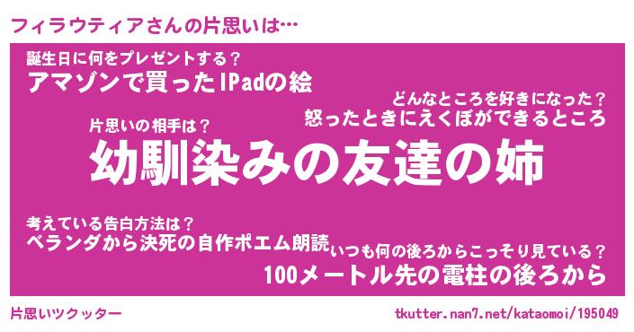 | 男性向けラノベタイトル風あだ名 | 『フィラウティアの憂鬱』 |
