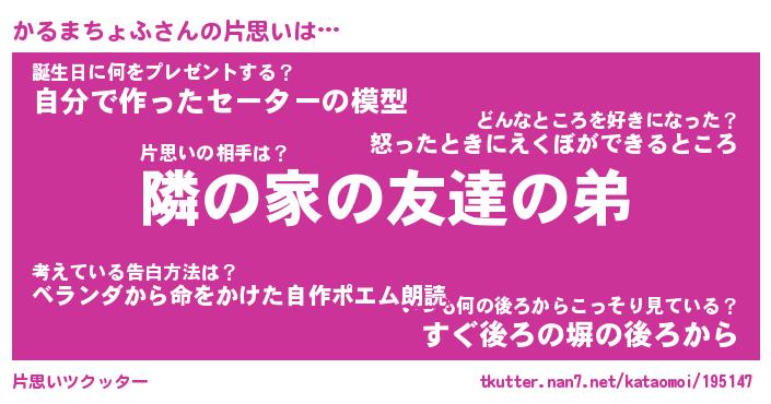 | ヘコむあだ名 | 『かるっふぃ~』『つくし』 |