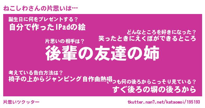 | 2回繰り返すあだ名 | 『ねこねこ』『ねねここ』『ねちねち』 |