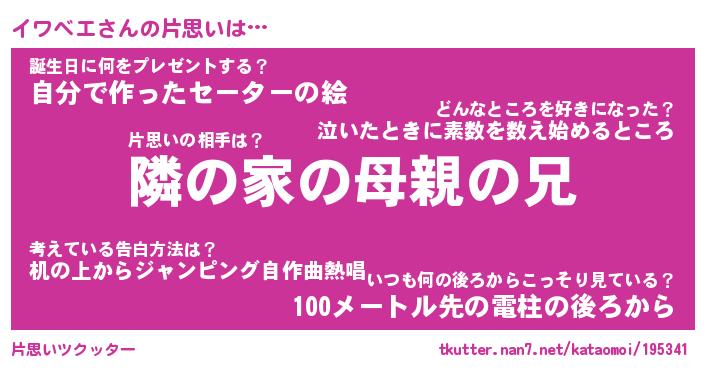 | 意味不明あだ名 | 『ペロリンイワベエ』『永久保存イワベエ』 |