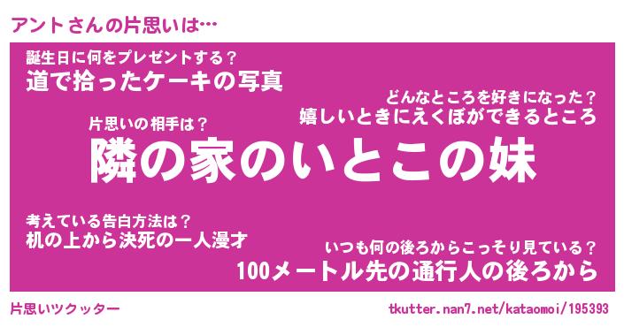 | ポケモン風あだ名 | 『アンチュウ』『アントダネ』 |