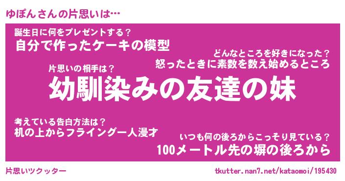 | 女子向けラノベタイトル風あだ名 | 『(仮)ゆぽんのやんごとなき事情』 |