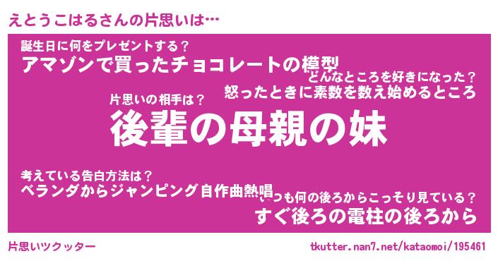 | 胡散臭い通販商品みたいなあだ名 | 『億万長者になれるブレスレット…その名も「えとうこはる」』 |