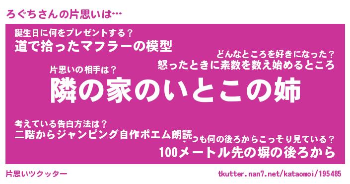 | ヘコむあだ名 | 『ろぐにゅー』『牛乳』『ろぐっ子』 |