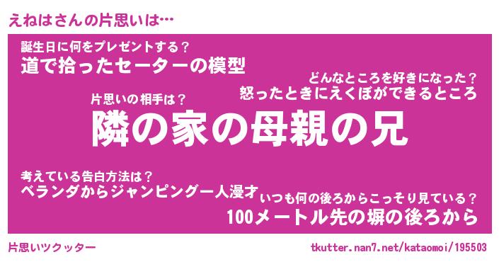 | 草はえるンゴwww …「エニ」 | 8月04日 05:56 |