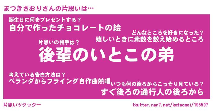 | 伝説のあだ名 | 『封印されしスナイパーまつきさおり』 |