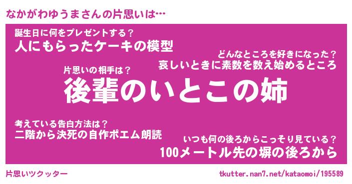| 女子向けラノベタイトル風あだ名 | 『なかがわゆうま姫と円卓の騎士』 |