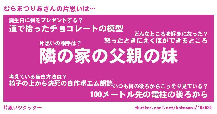 | 女子向けラノベタイトル風あだ名 | 『(仮)むらまつりあのやんごとなき事情』 |