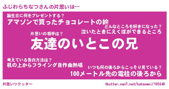 | 意味不明あだ名 | 『ペロリンふじわらちなつ』 |