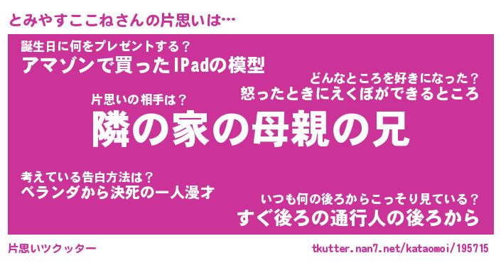| 胡散臭い通販商品みたいなあだ名 | 『必ず成功するブレスレット…その名も「とみやすここね」』 |