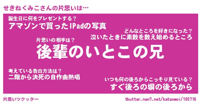 | 胡散臭い通販商品みたいなあだ名 | 『モテモテ間違いなし水晶球…その名も「せきねくみこ」』 |