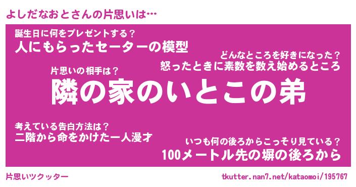 | 胡散臭い通販商品みたいなあだ名 | 『モテモテ間違いなし水晶球…その名も「よしだなおと」』 |