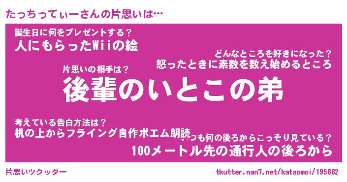 | ツイッター | たっちってぃーさんのツイッターID『dendenmushi_idle』 |
