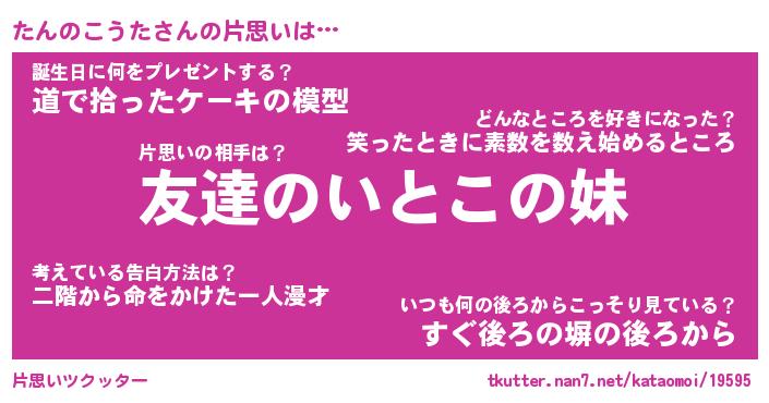 | 男性向けラノベタイトル風あだ名 | 『タンノコウタアートオンライン』 |