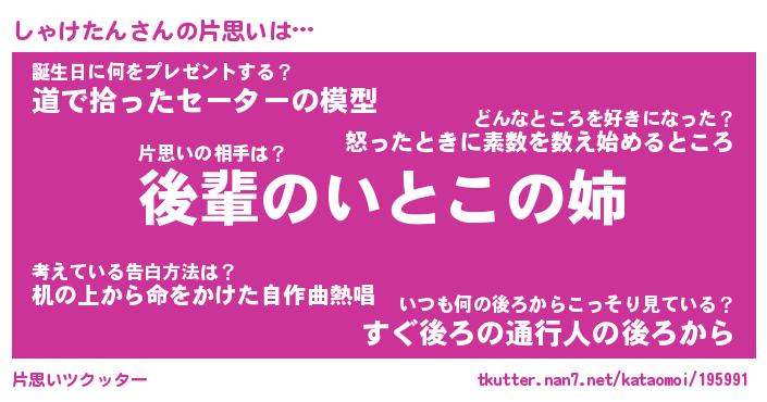 | 胡散臭い通販商品みたいなあだ名 | 『億万長者になれる水晶球…その名も「しゃけたん」』 |