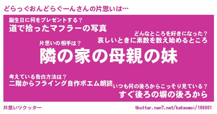 | 胡散臭い通販商品みたいなあだ名 | 『必ず成功するブレスレット…その名も「どらっぐおんどらぐーん」』 |