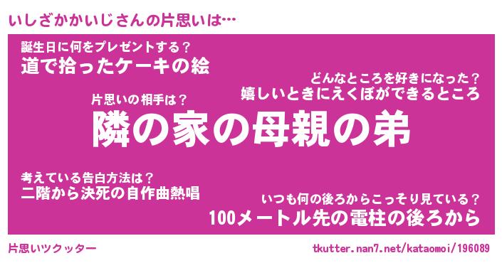 | 胡散臭い通販商品みたいなあだ名 | 『必ず成功するブレスレット…その名も「いしざかかいじ」』 |