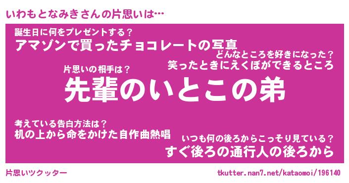 | ヘコむあだ名 | 『いわもー』『なまこ酢』『いわっ子』 |