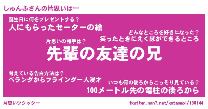 | 意味不明あだ名 | 『ペロリンしゅんふ』『永久保存しゅんふ』 |